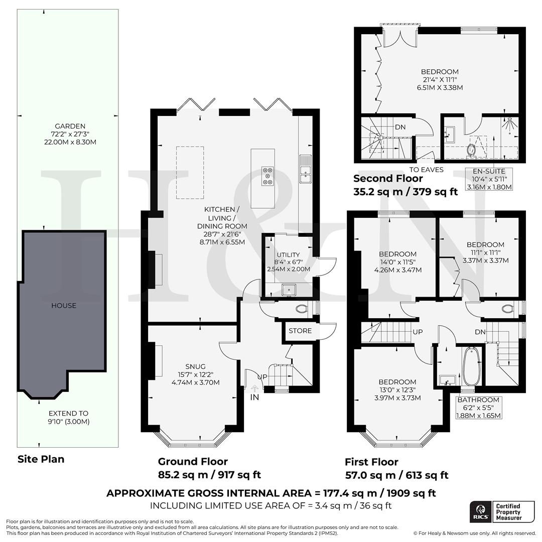 Internal measurement: 1,909 Square feet / 177.4 Square metres