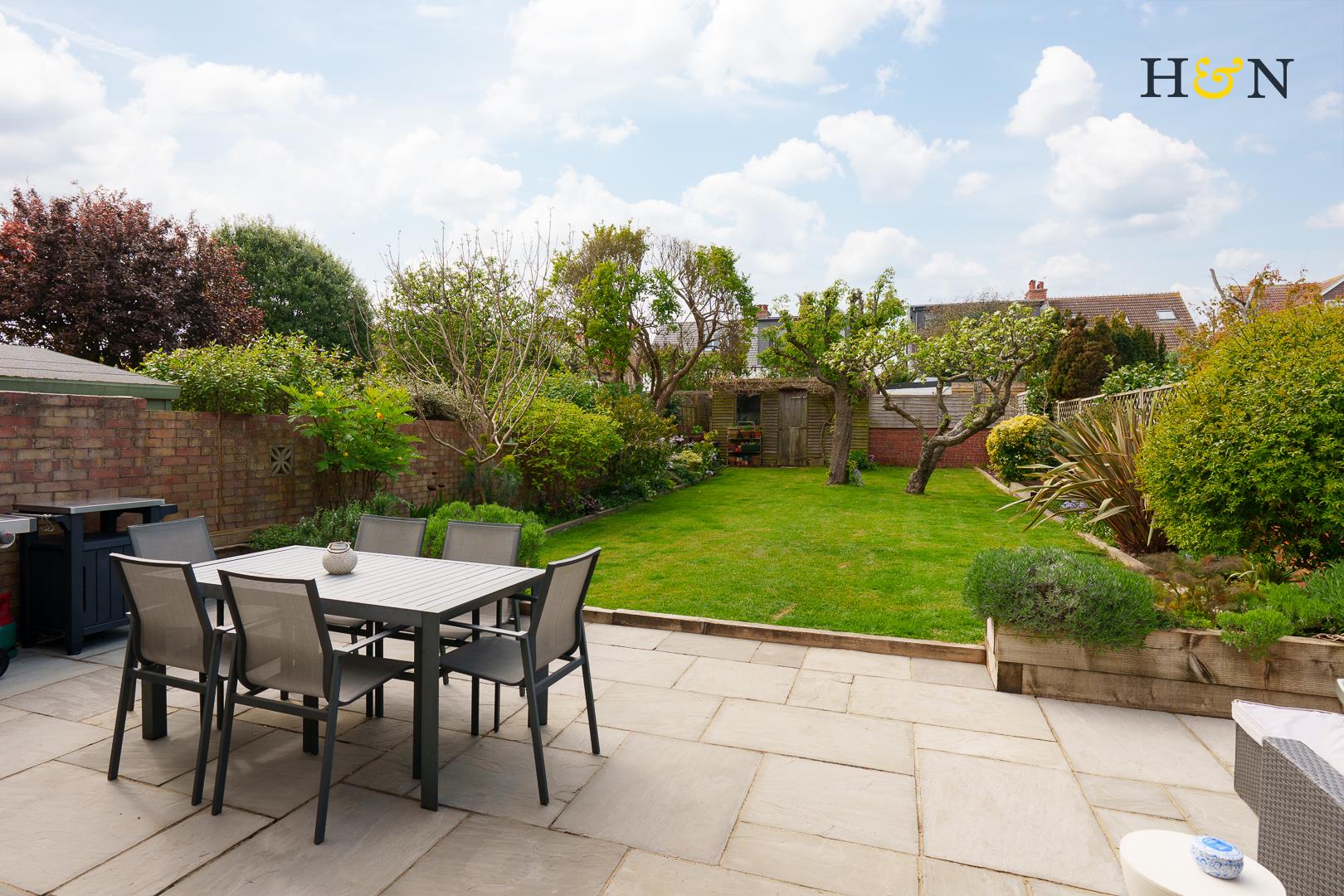 The excellent selection of trees include a mature pear, apple and cigar tree, provide privacy and colour all year around. Adorned with raised borders of Jasmine, Honeysuckle and Clematis, alongside a central lawn and a patio area, this garden is perfect for outdoor gatherings and a true sanctuary.